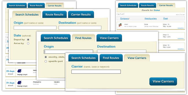 Linescape.com allows you to search the sailing schedules of over 125 shipping lines in real-time.